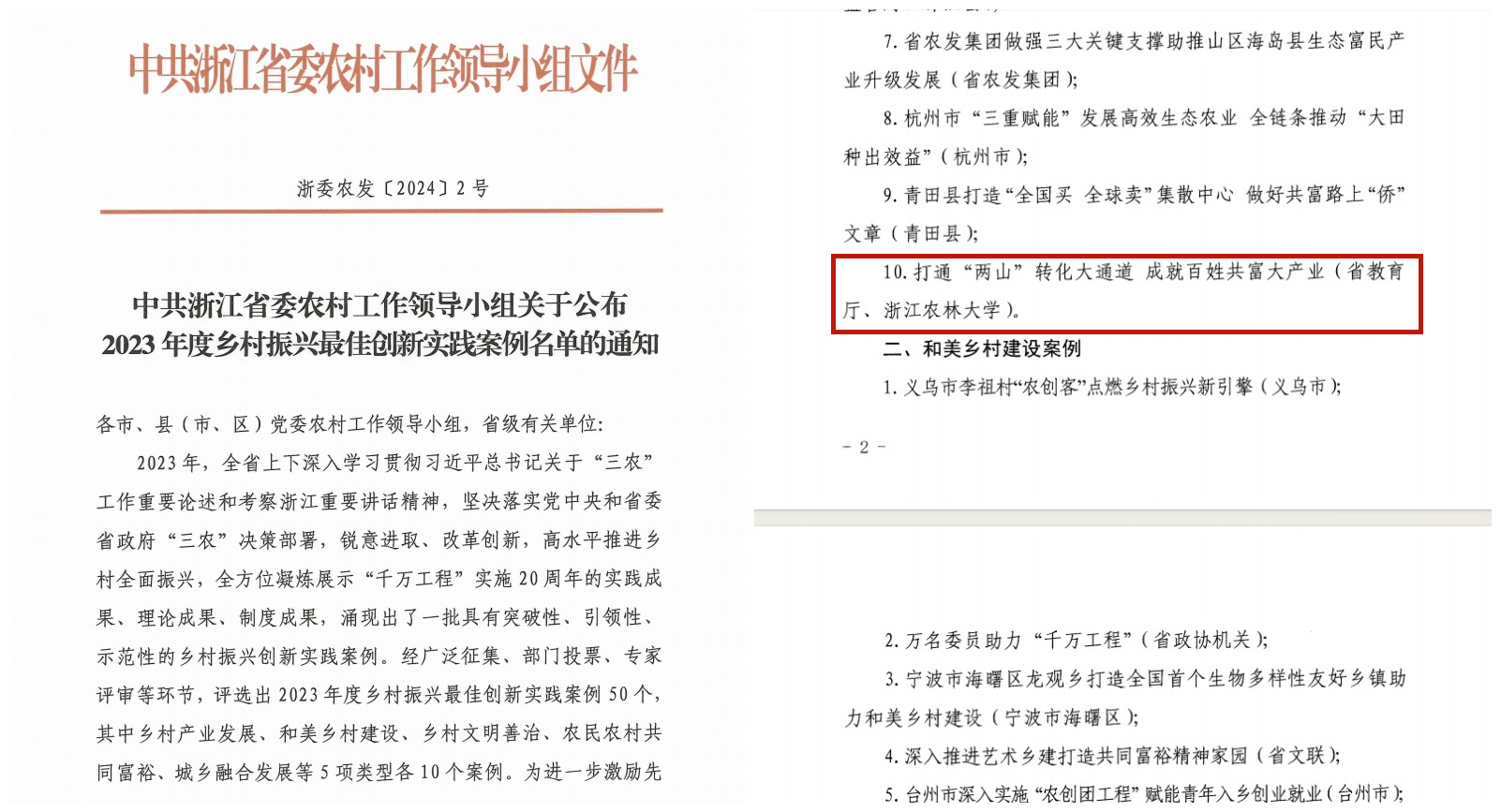 近日,浙江省委農村工作領導小組公布了2023年度全省鄉村振興最佳創新實踐案例名單。我校服務鄉村振興的成果《打通“兩山”轉化通道 成就百姓共富大產業》入選鄉村產業發展案例,這也是全省高校今年唯一入選的案例。