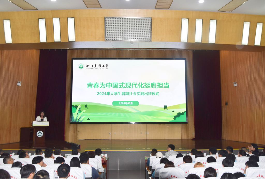 6月24日,2024年浙江農林大學暑期社會實踐出征儀式在圖書館第一報告廳舉行。校黨委副書記施美紅,校黨委委員、宣傳部部長倪建均出席活動。