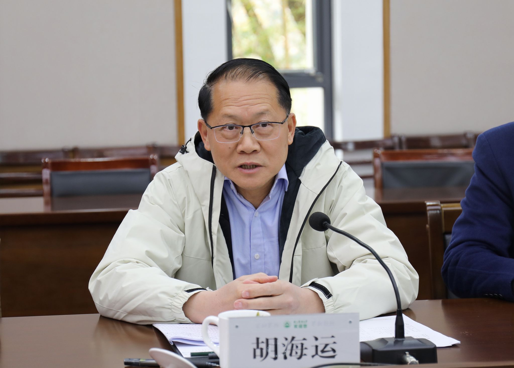 朱斌對胡海運一行來校調研表示歡迎,對韶關市領導和相關部門在學校竹子團隊與地方合作中提供的大力支持表示感謝,并簡要介紹學校的辦學歷程、學科特色、科學研究及社會服務等方面情況。