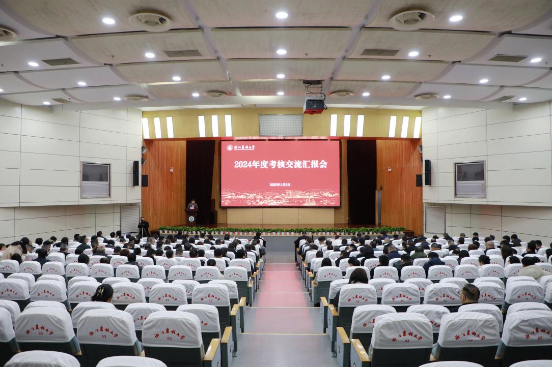 1月3日,學校召開2024年度考核交流匯報會。校黨政領導班子成員出席會議。全體中層干部、教師代表、各單位辦公室主任參加會議。匯報會由規劃處、學科辦負責人主持。
