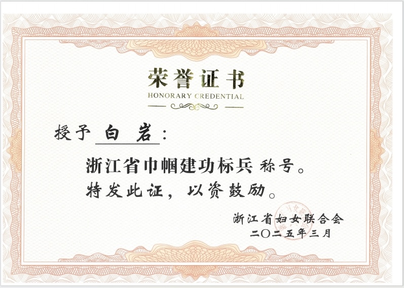 白巖教授喜獲“浙江省巾幗建功標(biāo)兵”榮譽(yù)稱號