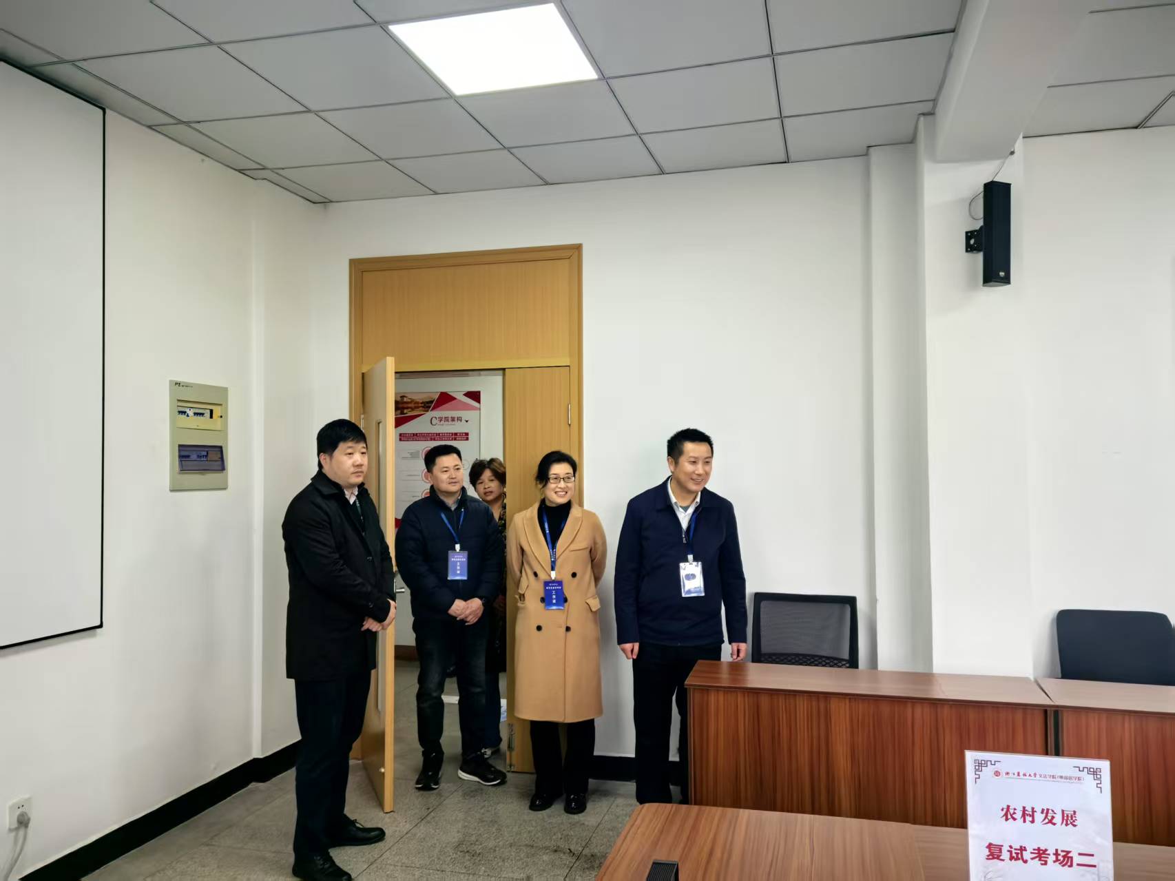 復(fù)試期間,校領(lǐng)導(dǎo)多次帶隊(duì)深入各學(xué)院復(fù)試現(xiàn)場(chǎng)檢查指導(dǎo),實(shí)地檢查考場(chǎng)環(huán)境,巡查復(fù)試流程,關(guān)心復(fù)試考生。各學(xué)院精心組織,學(xué)院領(lǐng)導(dǎo)靠前指揮,復(fù)試管理規(guī)范有序,為廣大考生提供了細(xì)致周到的“暖心服務(wù)”。