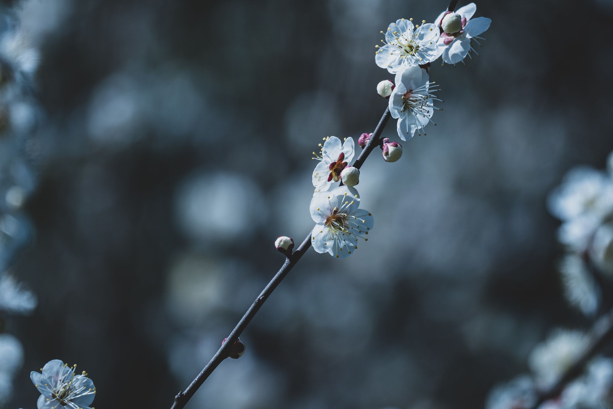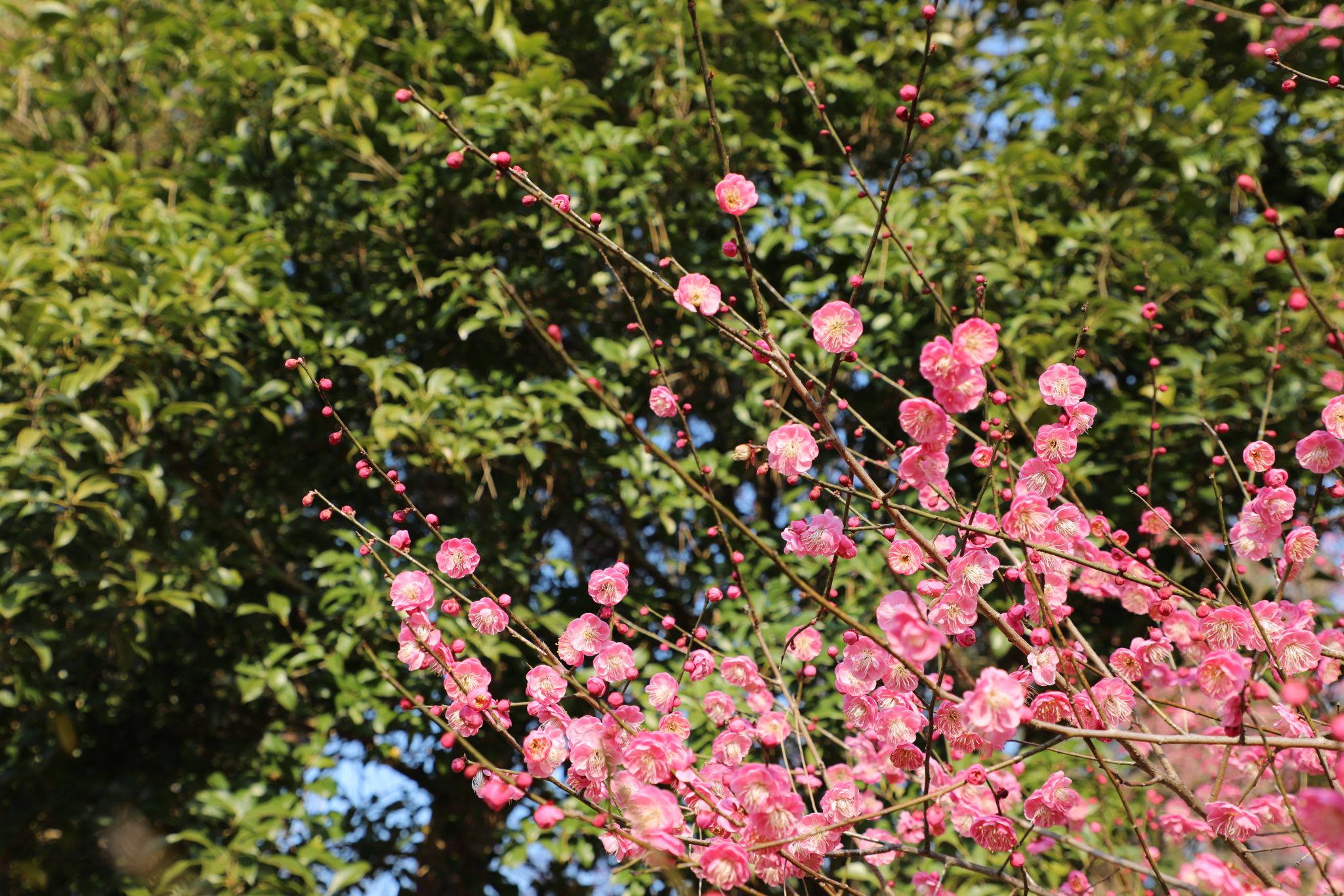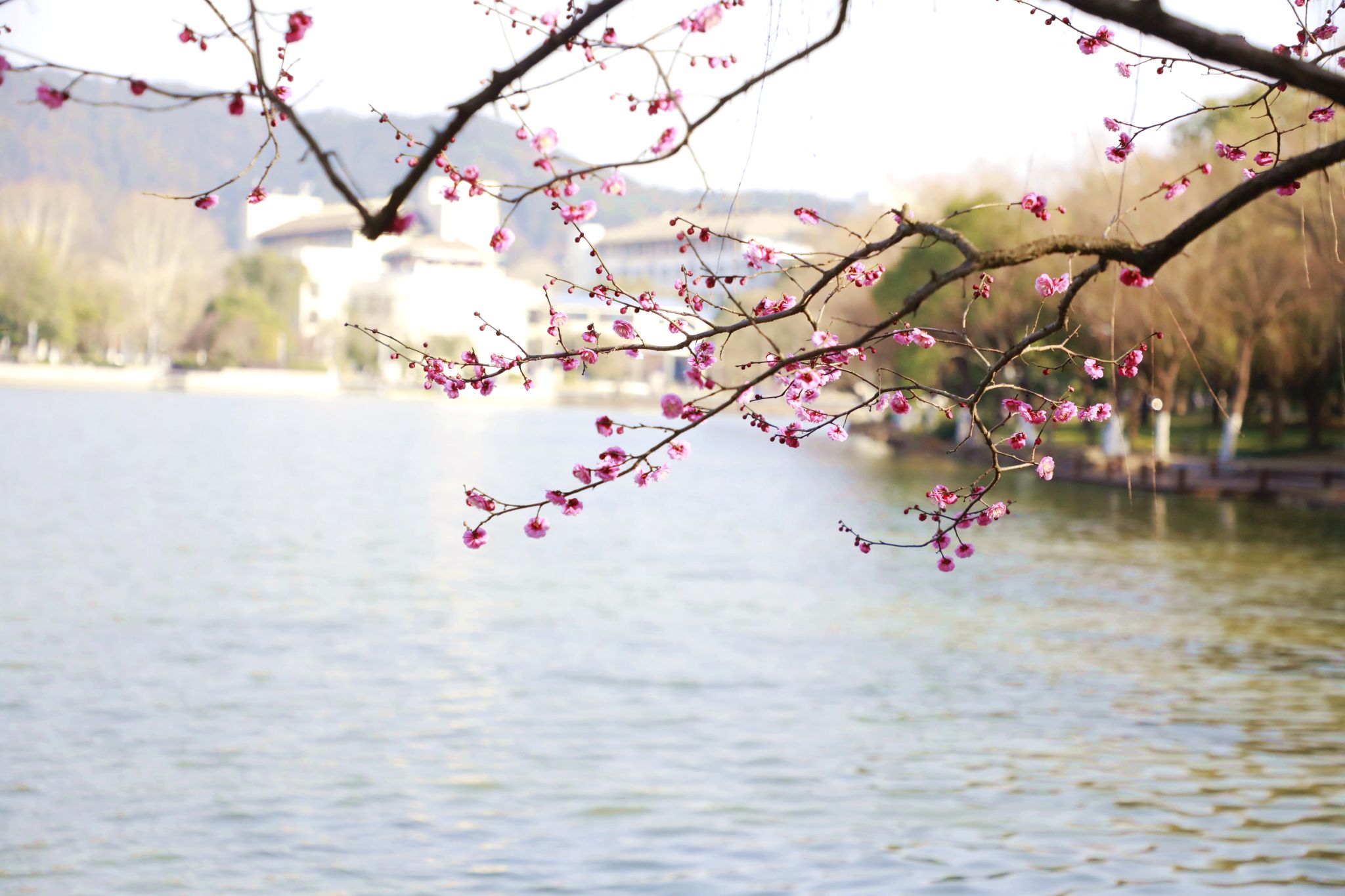 午后的陽光溫柔地灑在梅花上