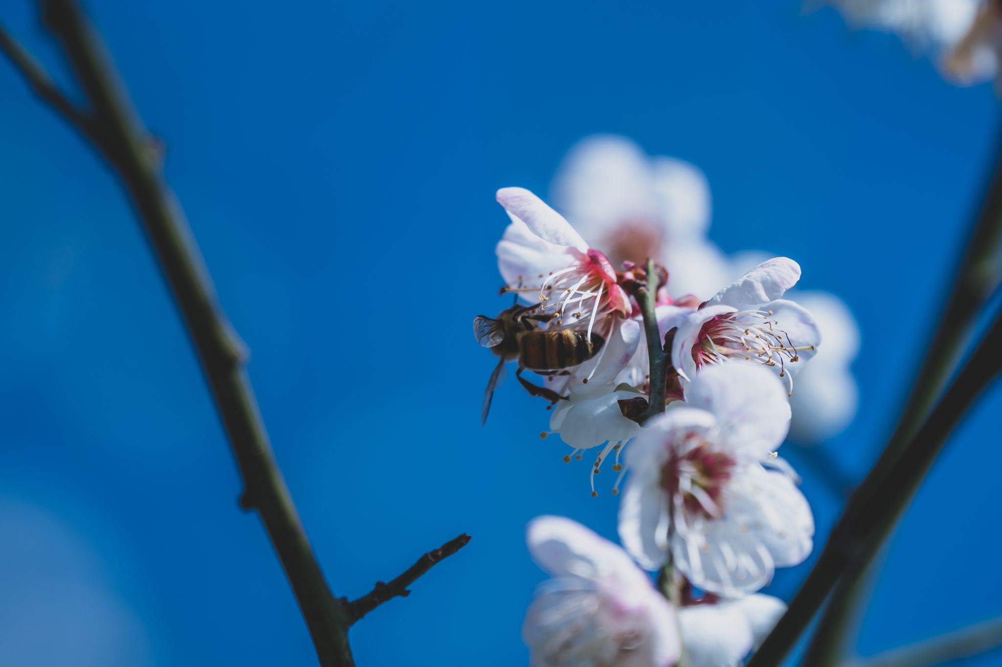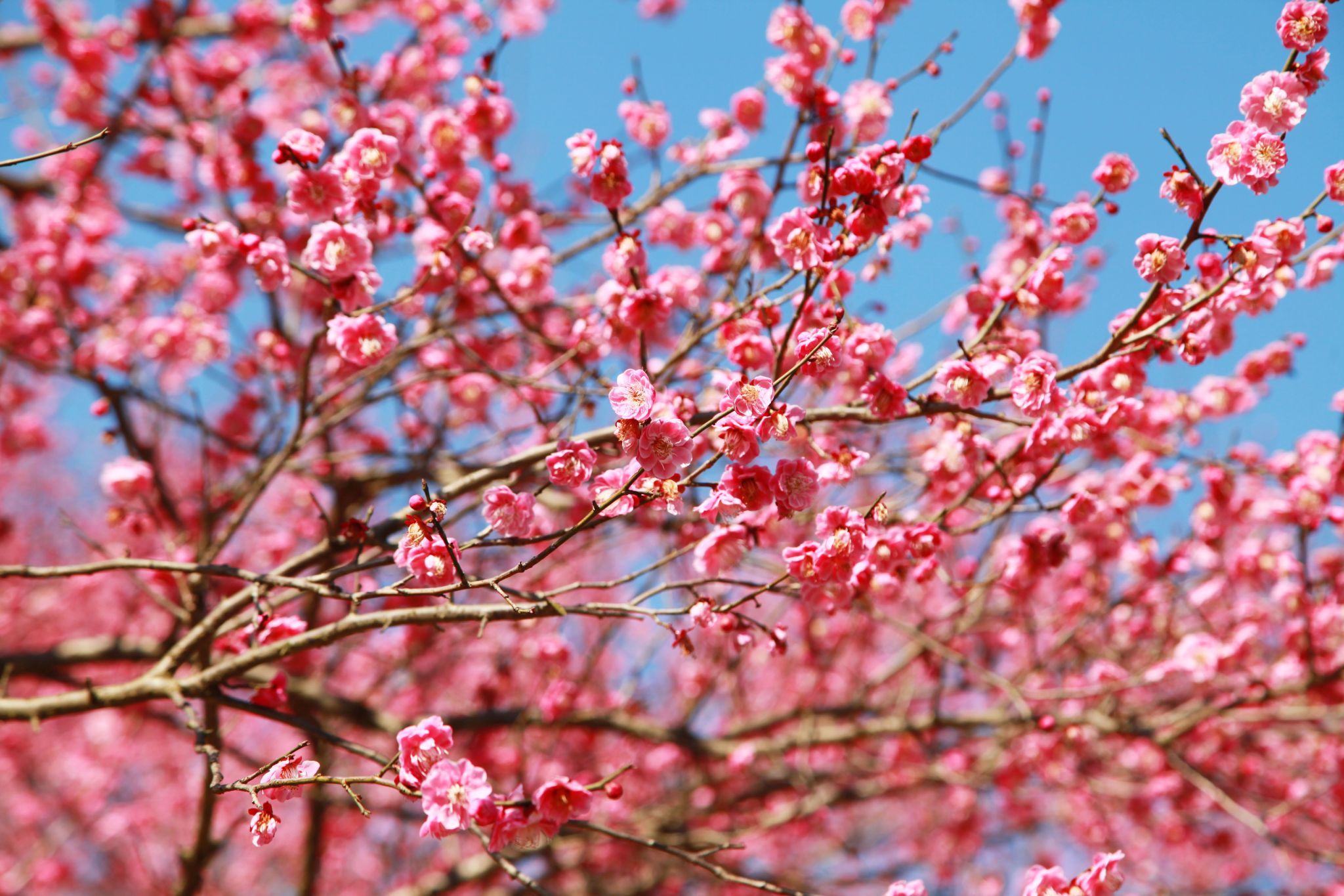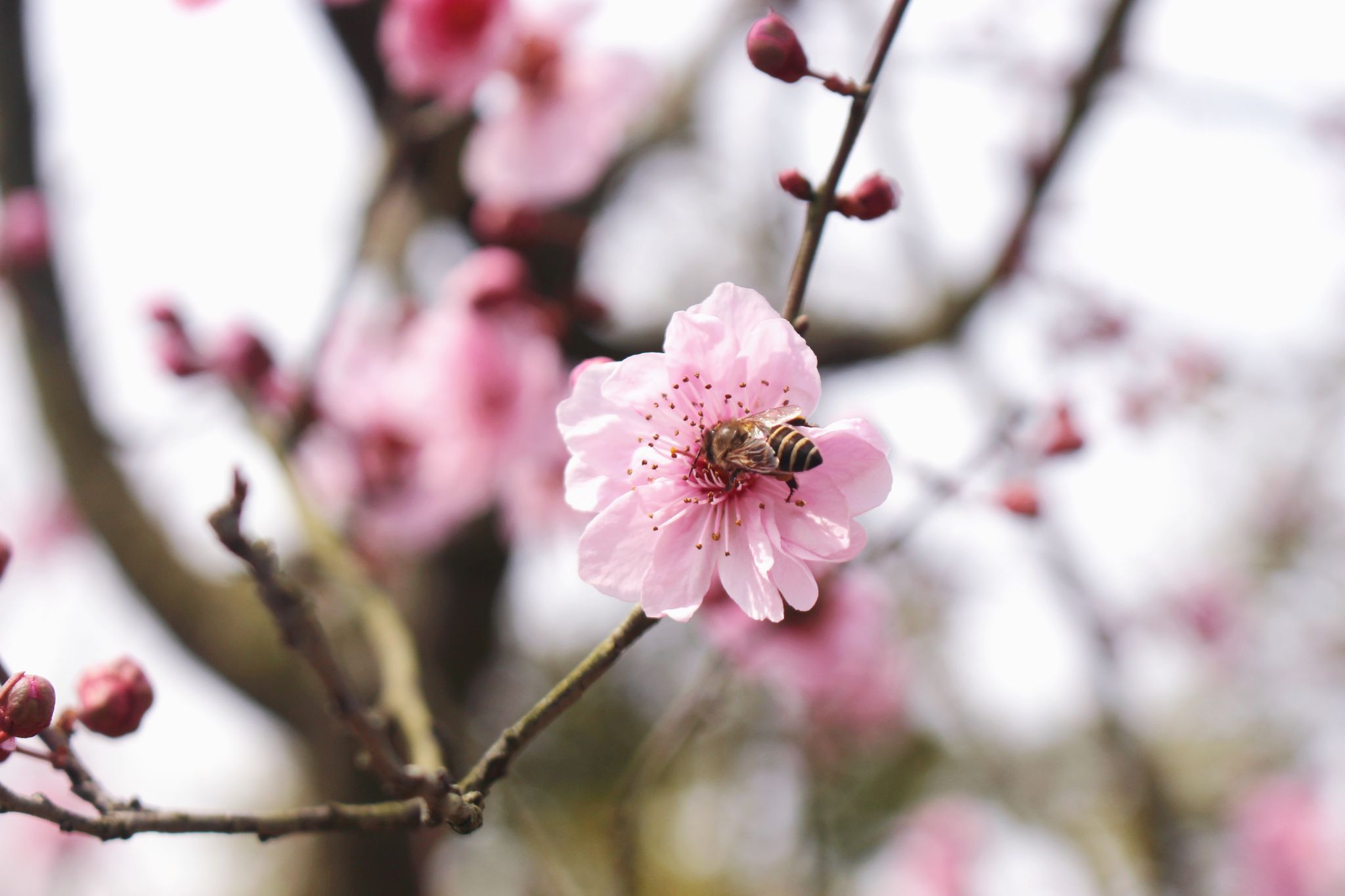 午后的陽光溫柔地灑在梅花上
