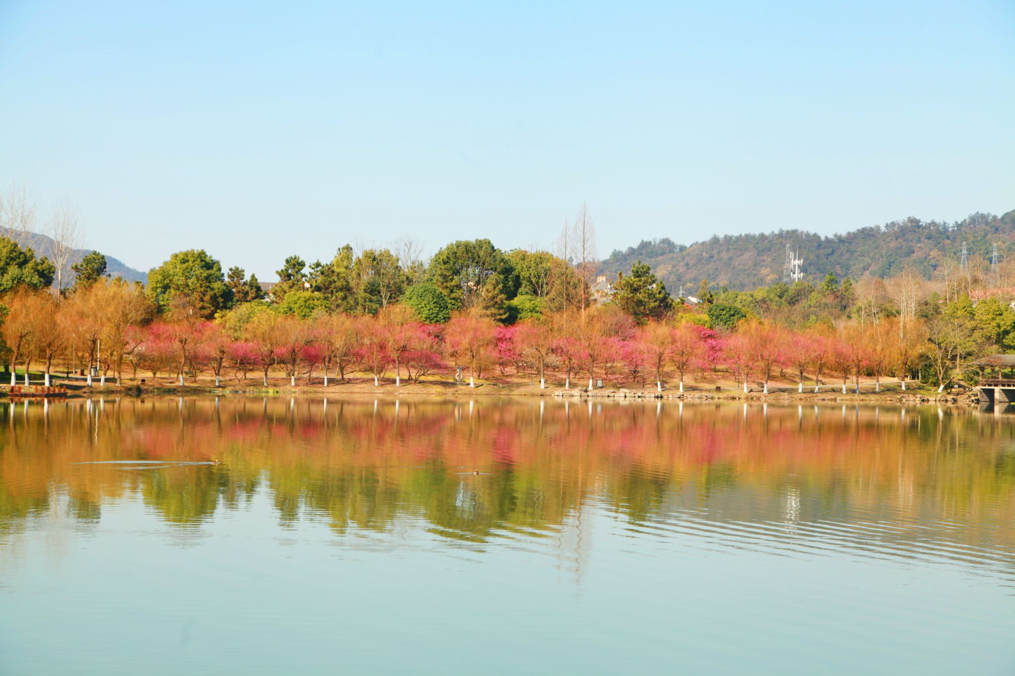湖水倒映著春的絢爛