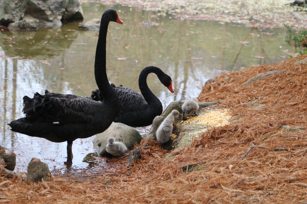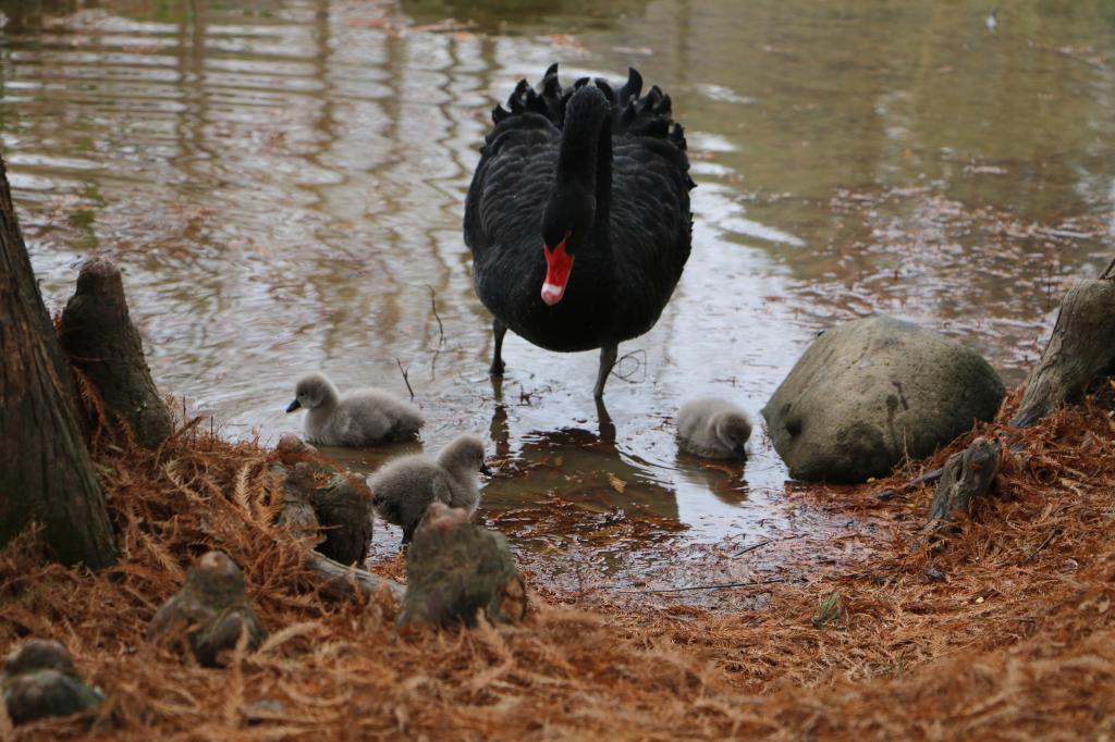而黑衣紅喙、優(yōu)雅悠閑的黑天鵝家族