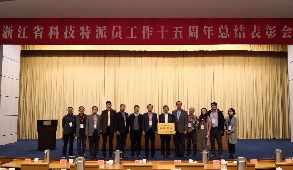 我校省科技特派員陳思宇榮獲“突出貢獻科技特派員”稱號,合作處、林生院榮獲 “浙江省科技特派員工作先進集體” 稱號,高培軍等14位科技特派員獲通報表揚。合作處負責人作為先進單位代表上臺領獎,斯金平教授作為全省科技特派員代表作交流發言。