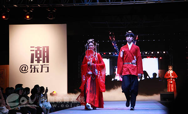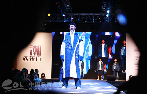 這次畢業(yè)秀主題為“潮@東方”,來源于“中國潮”力量在國際服裝周的醒目亮相。本土品牌的轉(zhuǎn)型,即是國人對中國元素的情懷,也是服裝設(shè)計理念的蛻變。畢業(yè)生們在設(shè)計中運用漢服等傳統(tǒng)形制,百家衣拼布等傳統(tǒng)工藝、山海經(jīng)怪獸圖樣等傳統(tǒng)圖案、布老虎等傳統(tǒng)造型和中藥染等傳統(tǒng)染色,與時尚流行趨勢相結(jié)合,挖掘傳統(tǒng)服飾文化魅力,倡導(dǎo)民族文化自信,打造了一場精彩的“國潮秀”。