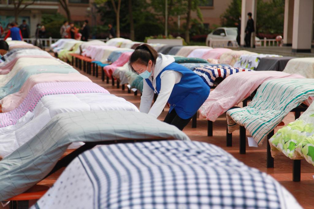 截至目前,根據學生預約,學校黨員志愿者和后勤阿姨已先后幫學生翻曬了近10000床被子。近日天氣晴好,學校將根據網上“云曬被”的接單,確保在學生返校前陸續曬好被子。