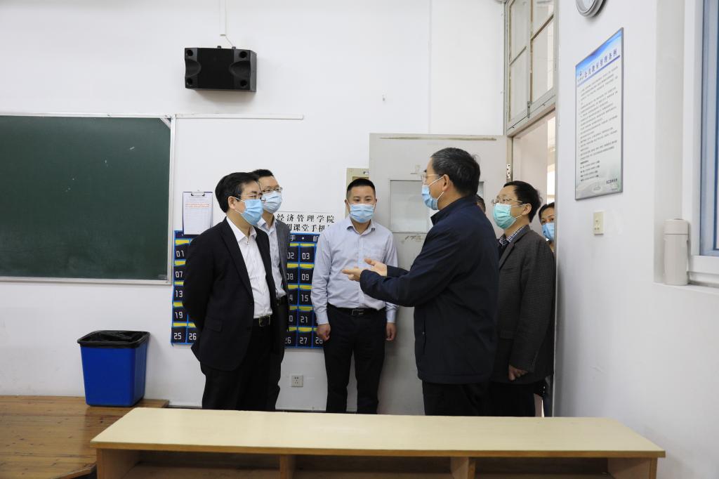 校黨委書記周國模,校黨委副書記施美紅,副校長沈月琴、吳家勝,校黨委委員、組織部長童曉暉一行來到東湖校區1號教學樓、大西門學生返校報到檢測點、A區學生寢室樓、集賢食堂檢查指導工作。