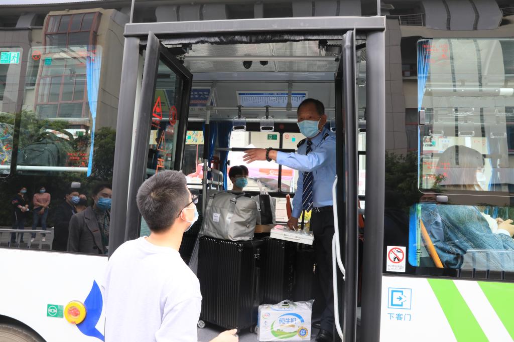 為了迎接返校報到的學生,學校安排了專門返校專車,從車站接學生回校,在校內安排擺渡車將學生送至公寓樓下;在東湖校區大西門和衣錦校區南門設置專門的報到檢測通道,實行校門口交通協調,自駕車輛即停即行,學生下車后立即進入專門通道;學生進校前要進行消毒,檢測體溫,檢查杭州健康碼、校園通行碼。校園內公共場所進行了通風、消毒,食堂也設置了排隊間隔距離限制,施行單桌同向入座就餐,確保用餐安全。