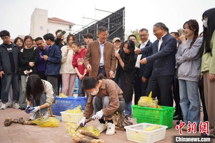 剝筍比賽現(xiàn)場(chǎng)。 校方供圖