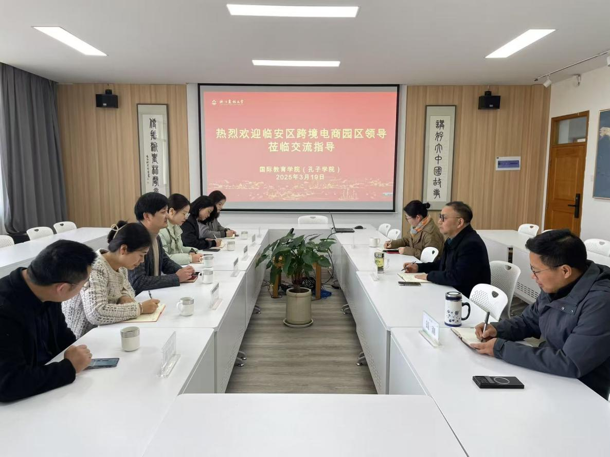 3月19日,臨安區商務局電子商務科科長鄭偉平一行與國教學院負責人就校地合作工作展開深入洽談。雙方聚焦國際生實習實踐與跨境電商園區協同發展,計劃通過擴大實習規模、創新培養模式、構建長效機制,推動臨安區跨境電商產業與國際化人才需求精準對接,助力區域經濟高質量發展。