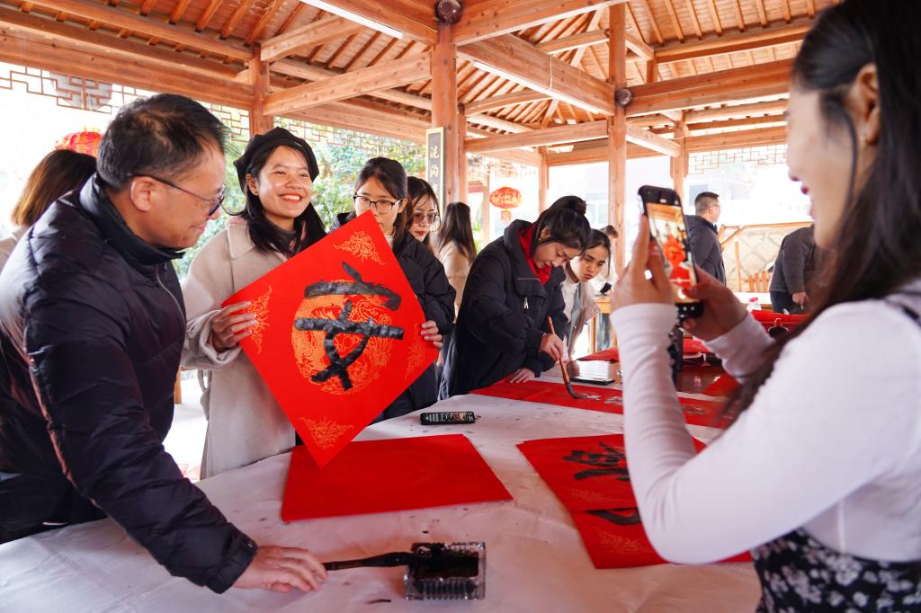 浙江農林大學30多名留學生來到杭州市臨安區錦北街道的泥川村,和當地村民一起剪窗花、寫春聯、掛燈籠、炒花生、打麻滋、包餃子、敲龍鼓,提前感受濃濃的“中國年”。