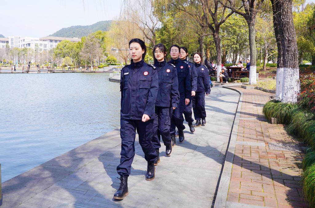 2024年3月8日,浙江農林大學“雷鋒班”女子巡邏隊成立,首批5名女子巡邏隊隊員正式上崗巡邏。浙江農林大學“雷鋒班”女子巡邏隊由該校“雷鋒班”的女生志愿者組成,主要利用課余時間進行校園巡邏,重點是監督勸阻不文明現象、發現上報安全隱患等。(中國教育報-中國教育新聞網 通訊員 陳勝偉 攝)