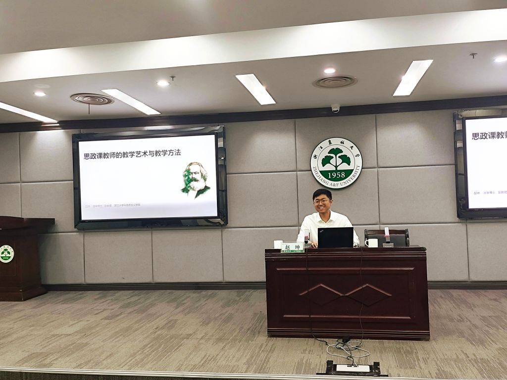 10月11日,馬院邀請“全國五一勞動獎章”獲得者、“浙江省勞動模范”、浙江大學馬克思主義學院副教授趙坤來校作《思政課教師的教學藝術和教學方法》的專題講座, 校宣傳部、馬克思主義學院、臨安區教育局、臨安區各中小學思政課教師等130余人參加。本次講座由馬院黨總支書記周凱主持。